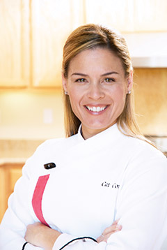 Our upcoming guest is Cat Cora, the “Iron Chef” on the Food Network television show Iron Chef America and also co-host of Around the World in 80 Plates on Bravo. You can find much information about her on the Internet such as here on her Wikipedia page.